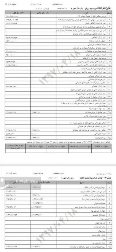 اسناد مالی، بانکی و حسابداری و صورتهای سود و زیان شرکت در ۳۵ صفحه ضمیمه این نامه میباشد.