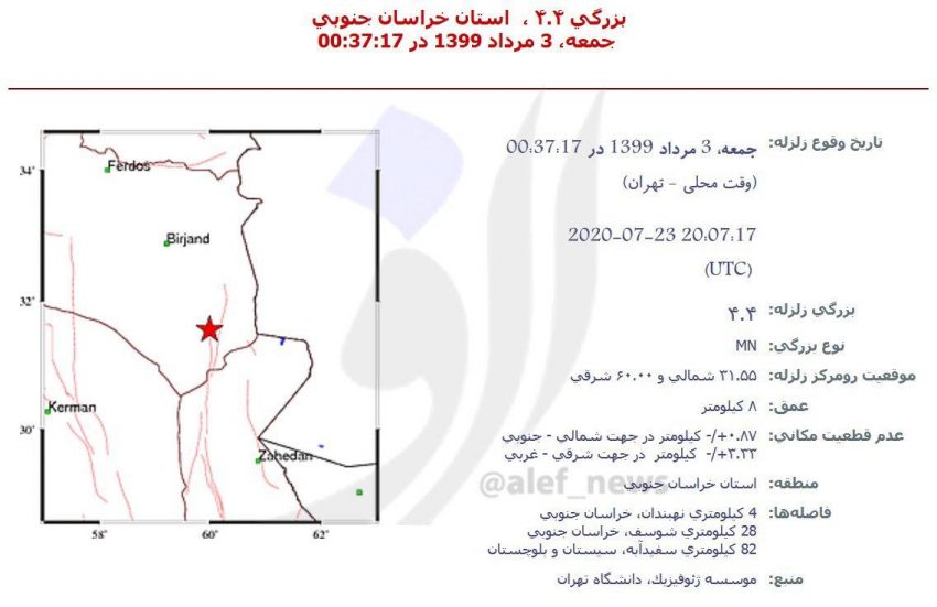 زلزله نسبتا شدیدی، نهبندان در خراسان جنوبی را لرزاند.