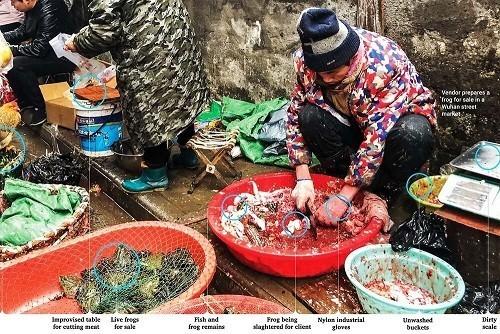 مقامات پزشکی چین وقتی سعی در یافتن منشأ ویروس جدید کرونا داشتند یک منبع احتمالی پیدا کرد: بازار مواد غذایی در ووهان چین، از میان ۴۱ بیمار نخست، ۲۷ نفر آنها در این بازار بودند. البته این شواهد قطعی نبود، ولی مقامات چینی بهسرعت بازار را تعطیل کردند. آنها قبلاً مشابه این پدیده را در مکانی دقیقاً مشابه این بازار دیده بودند. سال ۲۰۰۲ بود که ویروسی از خانواده کروناویروسها در بازاری مشابه ظهور یافت. آن زمان نیز مقامات بهداشتی در تلاش بودند تا از علّتِ شیوع آن بیماری که SARS نام گرفت، مطلع شوند. این ویروس نیز در بخش جنوبی سرزمینِ اصلی چین ظهور کرد و سپس در سراسر آن کشور پخش شد و ماهها پسازآن قربانی میگرفت. این ویروس بهتدریج ۲۹ کشور را آلوده و ۷۷۴ نفر را به کام مرگ فروبرد[vi].