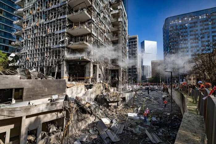 ساختمان اولمان که بخش شمالی آن هدف یک موشک بالستیک ایرانی قرار گرفته است