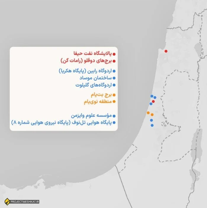با آغاز حملات موشکی ایران، اداره سانسور نظامی ارتش رژیم صهیونیستی که بهعنوان شاخهای از اداره اطلاعات ارتش این رژیم (امان) محسوب میشود، اقدامات شدیدی برای سانسور اخبار، کنترل اطلاعات و همچنین محدود کردن تصاویر منتشر شده در نتیجه حملات موشکی ایران و پیامدهای آن را در رسانههای رسمی و غیررسمی انجام داد. با این وجود، تصاویر و اطلاعات محدود منتشر شده اینگونه نمایان میکند که میتوان اهداف ایران را در سه قالب نظامی امنیتی، اقتصادی زیرساختی و مناطق مسکونی بررسی کرد. در ادامه مهمترین نقاط هدف قرار گرفته را به تفکیک مورد بررسی قرار میدهیم.