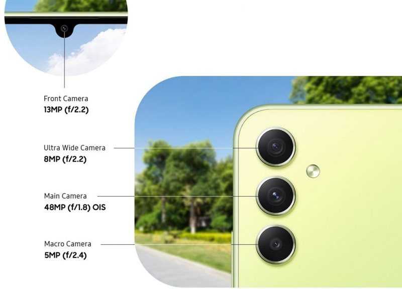 سامسونگ سه دوربین واید، اولتراواید و ماکرو را در پنل پشتی گوشی آ ۳۴ جای داده و دوربین عمقسنج نسل قبلی را کنار گذاشته است. این دوربینها بهترتیب ۴۸، ۸ و ۵ مگاپیکسلی هستند. دوربین اصلی به لرزشگیر اپتیکال مجهز است و زاویه دید دوربین فوق عریض به ۱۲۳ درجه میرسد. دوربین اصلی گوشی بهدلیل گشودگی بسیار خوب دیافراگم (f/1.8) توانایی بالایی در جذب نور دارد و از سوی دیگر، امکان فیلمبرداری 4K را در اختیارتان قرار میدهد. دوربین سلفی این مدل از نوع واید و ۱۳ مگاپیکسلی است و قابلیت ضبط ویدیوهای 4K را نیز دارد؛ امکانی که معمولا در گوشیهای این کلاس پیدا نمیشود.