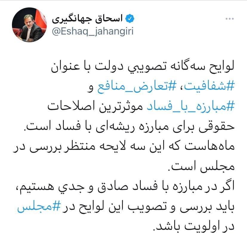اسحاق جهانگیری نیز در نامهای موارد هزینهکرد اعتبارات یک میلیارد یورو کرونایی را شرح داده است.