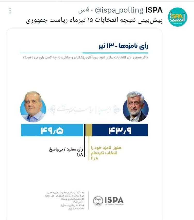 برخی شنیدهها حاکیست که در آرای شمارش شده تا این لحظه، آقای مسعود پزشکیان از آقای سعید جلیلی پیش افتاده و این شمارش به سود پیشتازی آقای پزشکیان پیش میرود.