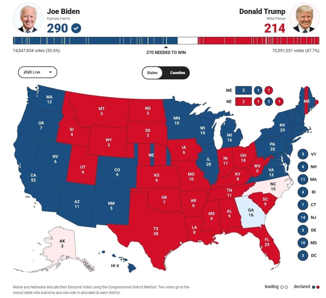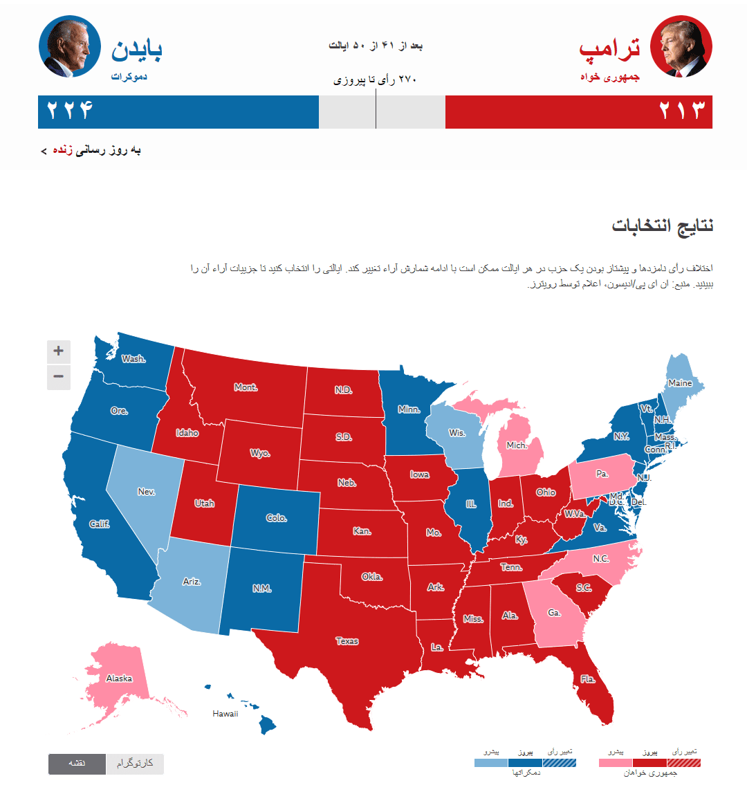 نزدیک بودن آراء ملی: به رغم سیستم الکترال، آراء ملی تا حدی آشکارکننده روندهاست. در انتخابات ۲۰۲۰، بایدن در سطح ملی حدود ۵درصد از ترامپ پیش بود. در این انتخابات تا ظهر شنبه، در سطح ملی تنها یک و دو دهم درصد بین کاندیداها تفاوت است که البته در این تفاوت، هریس پیش است.