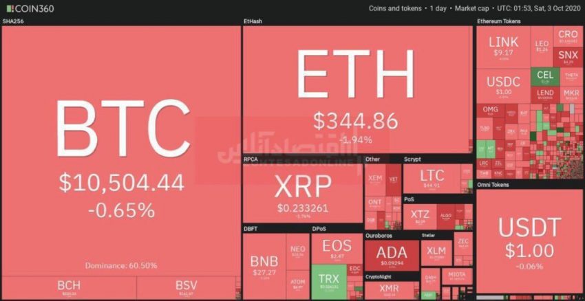 در معاملات روز گذشته بیتکوین با کاهش ۰.۶۵ درصدی به قیمت ۱۰ هزار و ۵۰۴ دلار مورد معامله قرار گرفت.