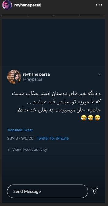 • واکنش عجیب ریحانه پارسا به شایعات درباره فروتن