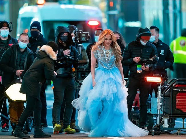 گوشواره‌های حلقه‌ای که از لابلای مو‌های طلایی و مواج می‌رقصند زیبایی منحصر به فردی را نمایش می‌دهد. با آرایشی صورتی و چهره‌ای براق، این سوپر استار اغواگر، در مرکز توجهات قرار گرفت. نکته قابل توجه تمام عکس‌هایی که در طول تدارک فیلمبرداری شب سال نو خودنمایی می‌کرد این مسئله بود که تمامی تهیه کنندگان، دست اندرکاران و فیلم برداران با ماسک در صحنه حضور داشتند، فقط جنیفر لوپز این سوپر استار مشهور امریکایی بدون ماسک برای اجرای برنامه در صحنه حضور داشت.