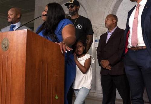 ” جیانا فلوید” دختر ۶ ساله و “روکسی واشنگتن” همسر جورج فلوید دیروز برای نخستین بار با حضور در ساختمان شهرداری شهر “مینیاپولیس” در مقابل دوربین خبرنگاران ظاهر شدند و در یک نشست خبری شرکت کردند.