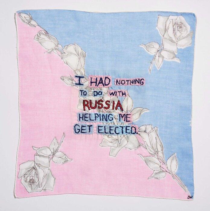 دو سال از زمامداری ترامپ می‌گذشت که دیانا ویمار (Diana weymar) تصمیم گرفت توجهات را به پست‌های تند و تحریک‌آمیز وی در توئیتر جلب کند. وی برای انجام این کار به جای استفاده از رسانه اجتماعی محبوب ترامپ، نخ و سوزن را به عنوان ابزار انتخاب کرد. تعابیر طعنه‌آمیز وی از برخی از به یادماندنی‌ترین توئیت‌های تند رئیس‌جمهوری آمریکا در آستانه برگزاری انتخابات ریاست جمهوری در این کشور، در یک مجموعه نمایشگاه به معرض نمایش گذاشته می‌شود.