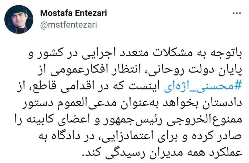 این هشتگ پس از آن داغ شد که مصطفی انتظاری، از فعالان رسانه در توییتر این خواسته را از رئیس دستگاه قضا مطرح کرد.