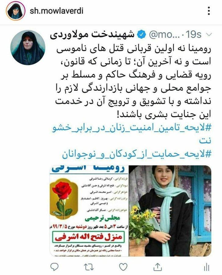 آنچه مبرهن است این پرونده باید به شکل ویژه بررسی و پدر قاتل با هر ادله ای قصاص گردد. تا دیگر هیچ پدری جرأت نکند برای مسائلی چون غیرت و ناموس، فرزندش را به قتل برساند. همینطور با مسببین احتمالی دیگر این اتفاق از جمله بازپرس، قاضی و مامور پلیسی که با سپردنش به دست پدر و عدم تامین امنیت این دختر نوجوان اسباب قتل او توسط پدر جنایت کارش را فراهم آورده اند، برخورد قاطع صورت گیرد. حوادث اینچنینی قلب جامعه را به درد می آورد و آرامش جامعه را بر هم می زند. در فضای مجازی همه جا صحبت از رومینا و نحوه قتل اوست. نباید اجازه دهیم این حوادث به دست فراموشی سپرده شوند.و مسئولان امر می بایست در برابر چنین جنایاتی آنقدر حساسیت به خرج دهند تا دیگر شاهد اینگونه حوادث تلخ نباشیم. خانه پدری باید محل مهر و عشق باشد و نه قتلگاه دختران جوان! …