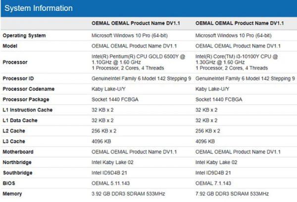 بر اساس گزارش جدیدی که امروز و با استناد به لیست خرده فروشی تایلندی Shopee Thailand منتشر شده، سرفیس گو ۳ در دو نسخه عرضه خواهد شد که یکی به پردازنده دو هسته ای Intel Pentium Gold 6500Y و دیگری به پردازنده چهار هستهای Intel Core i3-10100Y مجهز خواهد بود. میزان حافظه رم این دستگاه ۴ یا ۸ گیگابایت و فضای ذخیره سازی داخلی نیز ۶۴ گیگابایت از نوع eMMC یا ۱۲۸ گیگابایت از نوع SSD ذکر شده است.