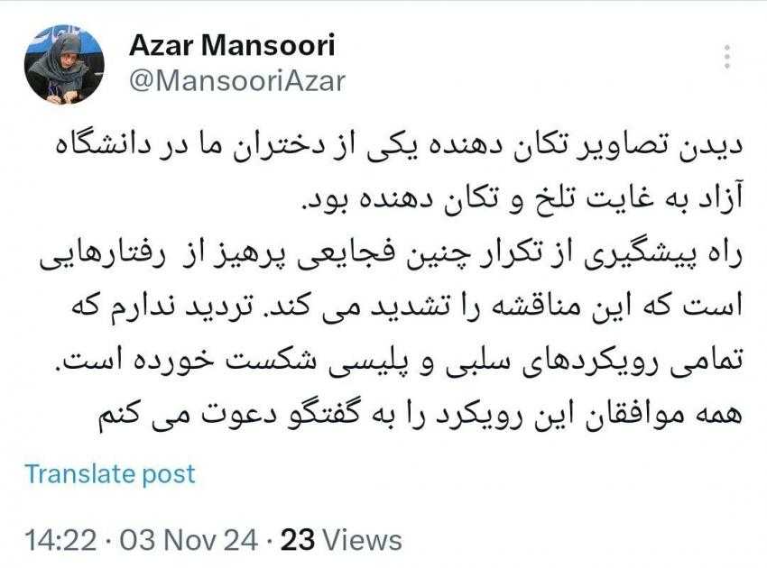 رئیس جبهه اصلاحات نسبت به ماجرای دیروز دانشگاه علوم تحقیقات آزاد اسلامی واکنش نشان داد.