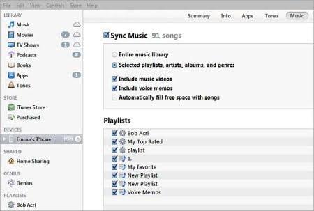 به این ترتیب موسیقی‌ها و فیلم‌های کاربر در iTunes library به نمایش در خواهند آمد و کاربر می‌تواند با انتخاب گزینه Sync که در بخش گوشی متصل به کامپیوتر قرار دارد، به راحتی موسیقی و فیلم های خود را جا به جا کند. گفتنی است در این روش امکان انتقال فایل‌ها خاص، تصاویر و مخاطبین وجود ندارد.