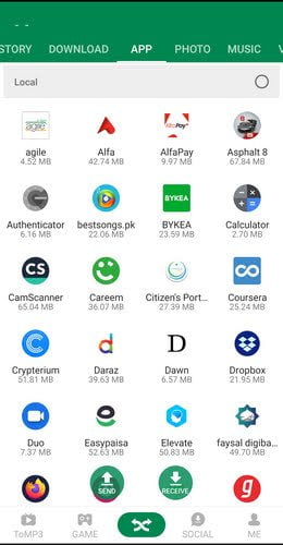 گام بعدی انتخاب گزینه Receive در دستگاه دوم است و به این ترتیب در رادار نمایش داده شده روی صفحه، کاربر می‌تواند گوشی دوم را انتخاب کرده و فایل‌های خود را جا به جا کند. سرعت انتقال فایل در این نوع جا به جایی بسیار بالا است و کاربر به راحتی می‌تاوند فایل‌های مورد نظر خود را انتخاب کند.