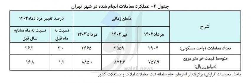 معاملات مسکن در تهران