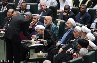 مهمترین بخش مراسم تحلیف، ارائه فهرست ۱۸ نفره کابینه پیشنهادی حسن روحانی به علی لاریجانی بود که در همان جلسه اعلام وصول و این اسامی قرائت شد.