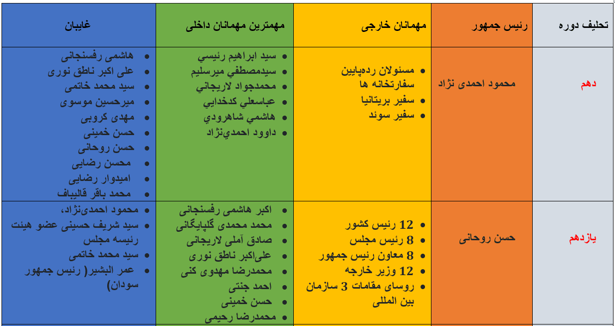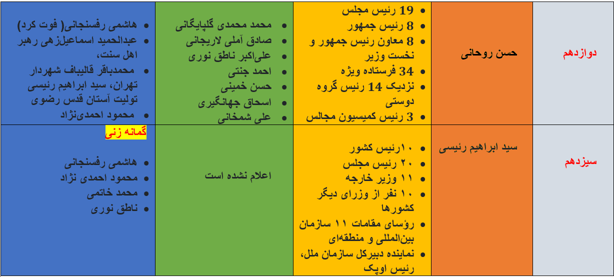 براساس چینش صندلی های، محمود احمدی نژاد باید میان حامد کرزای و حسن روحانی می نشست
