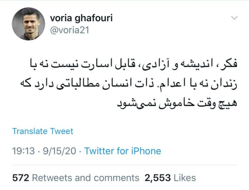 وریا هم میداند مردم حرفهای او را بدون سانسور میخوانند و دیگر نگران شنیده نشدن نظراتش نیست. هواداران فوتبال و استقلال هم مصاحبه کامل وریا غفوری را در کانالهای تلگرامی یا سایتهای خبری خواندند.