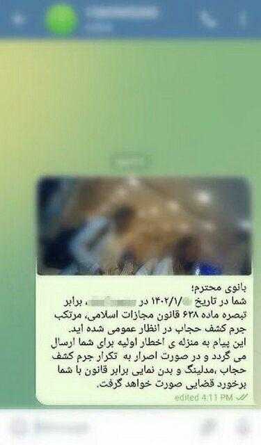 البته مستندات کشف حجاب فرد نزد پلیس محفوظ است تا در صورت نیاز برای قاضی ارسال شود و این مستندات بههمراه پیامک برای فرد ارسال نمیشود.
