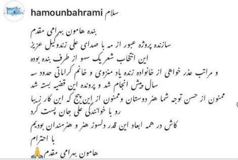 همچنین هامون بهرامی مقدم در توضیحی نوشته است: «سلام